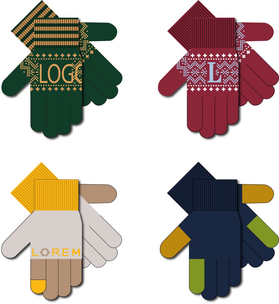Модель: цельновязанные бесшовные перчатки с эластичной манжетой и жаккардовым узором в 2-3 цвета. Манжета может быть полосатой (горизонтальные полосы 1-2 цветов, без узора и логотипа).